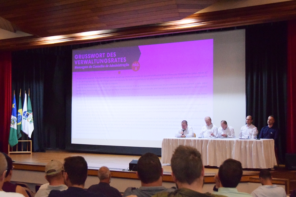 Ao final da AGO foi realizada uma homenagem aos cooperados Manfred Majowski e Edmund Gumpl, pela participação no Conselho de Administração da Cooperativa. Manfred exerceu o cargo de vice-presidente, enquanto Edmund esteve nos postos de diretor secretário e, posteriormente, diretor financeiro. “Preciso deixar meu muito obrigado aos dois por todo apoio, especialmente em 2025. Nosso novo Conselho de Administração tem o compromisso de continuar o legado construído por eles”, afirmou Adam Stemmer.